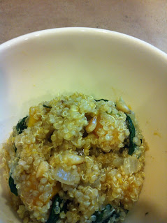 All that being said, I am taking this as a culinary challenge and, boy, am I embracing it! I've done a bit of research on foods I can make and this week I think I will eat better than I normally do. On the menu is; scallops, pumpkin soup made with coconut milk, salmon and today is a butternut squash, spinach and quinoa salad. IT is SOOOO delish! Seriously I may make it all the time. It is both gluten-free and vegan. Again BOTH scary words but this recipe is delicious!